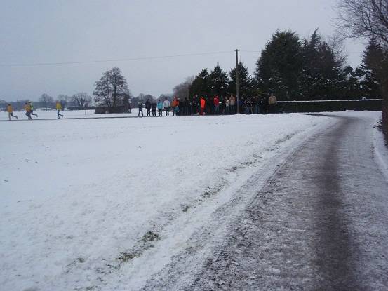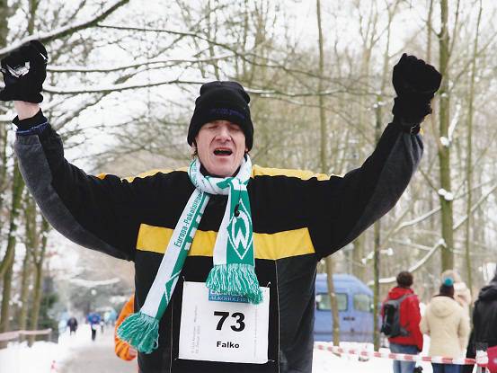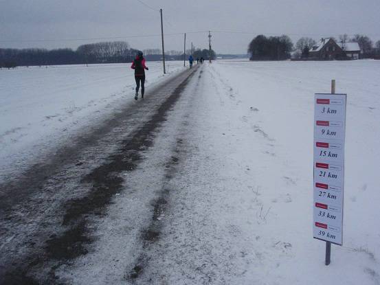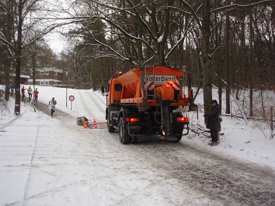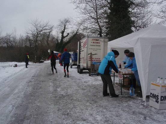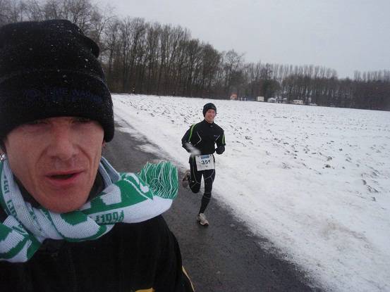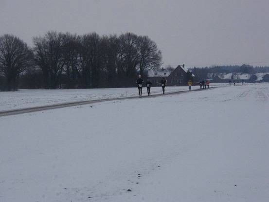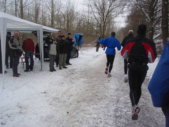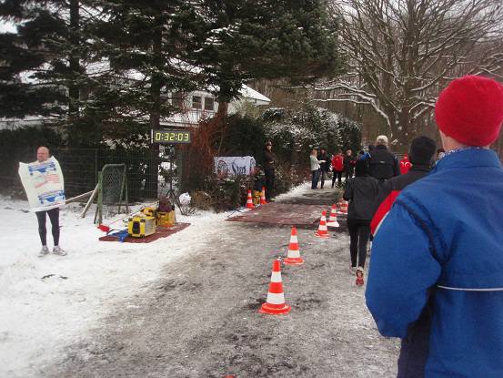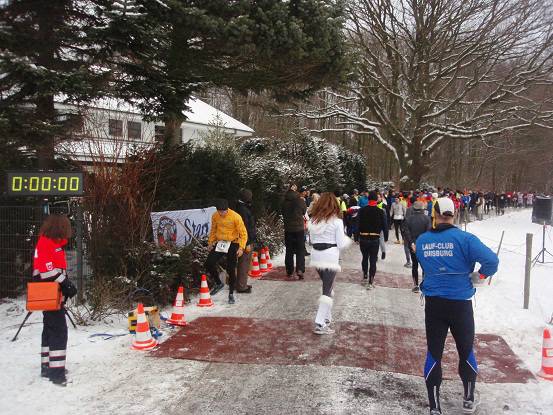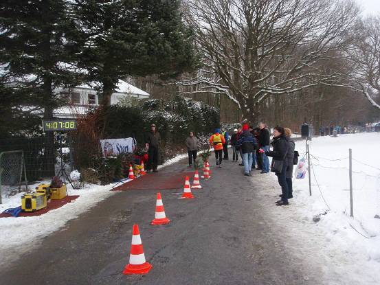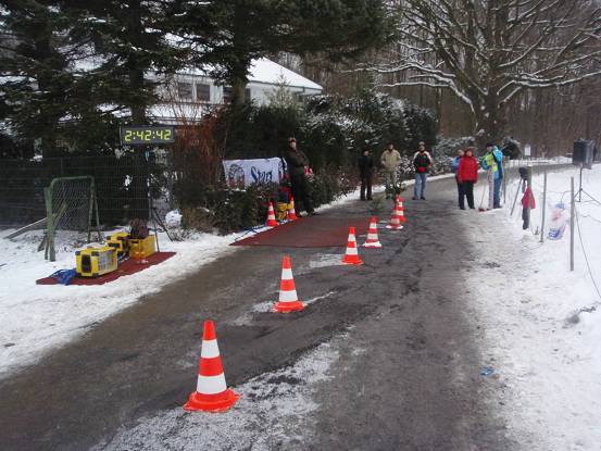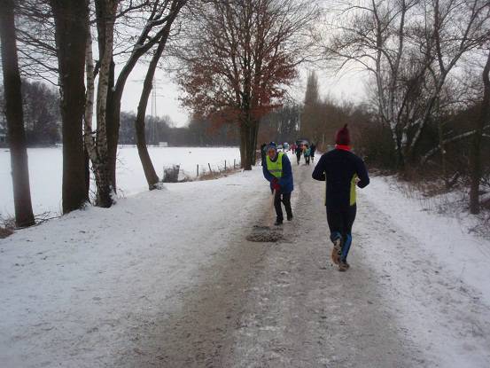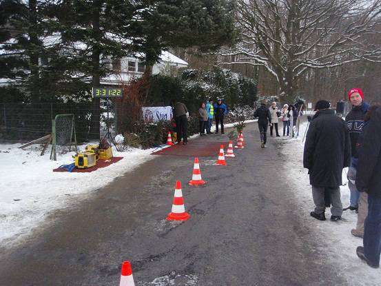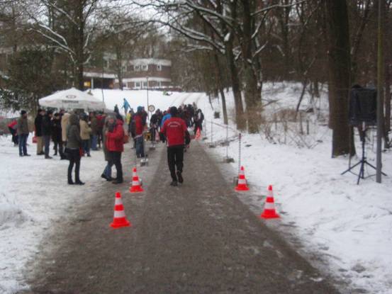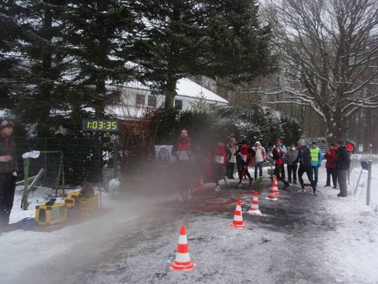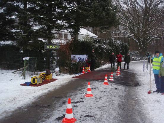 Jugendherberge Kevelaer 14.08 Uhr Eine schöne lange Zielgerade und auch die war gut zu laufen. Wie man überhaupt sagen muß, der ganze Kurs gut bis sehr gut zu laufen war, wenn man mal an die Bedingungen denkt. Das Eis war gut abgestreut und wo es rutschig wurde, legte der Veranstalter noch während der Laufes Hand an und löste alle Probleme. Grandios !! |