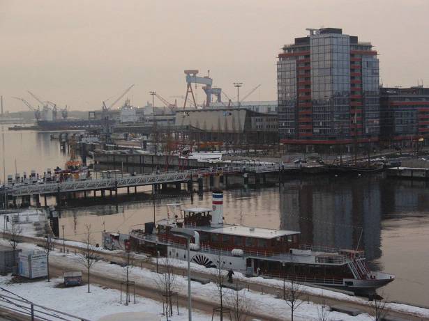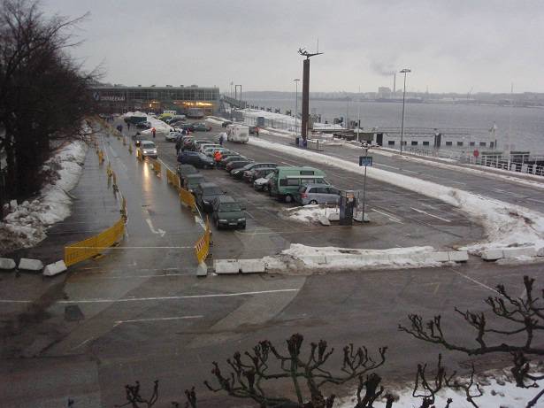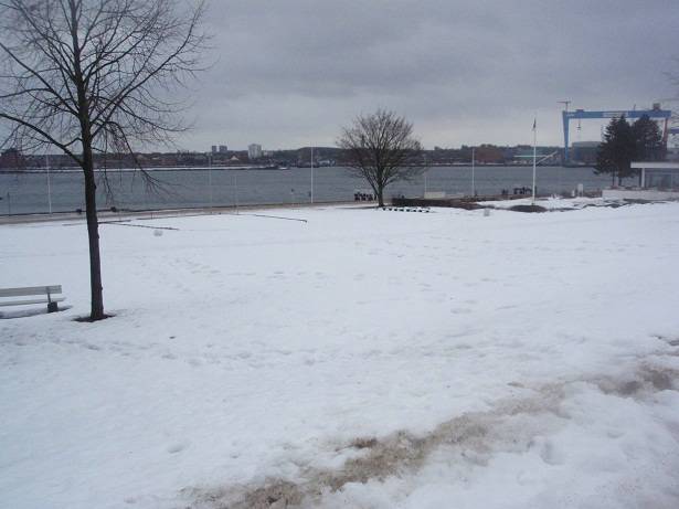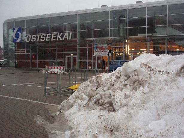 Ostseekai 8.36 Uhr Noch rasch um den hohen Schneeberg herum und dann ab ins Warme. |
