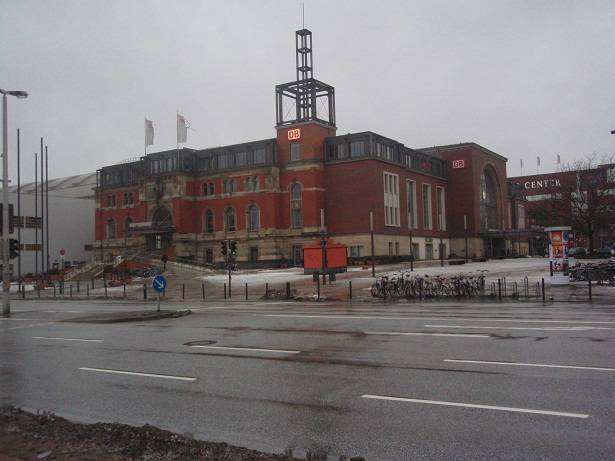 27. Februar 2010, 8.16 Uhr Kiel Hauptbahnhof Mit ziemlich tristem Wetter wurde ich Samstagmorgen in Kiel empfangen. Es war sehr windig und regnet. |