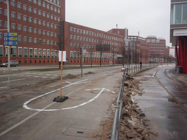 Wall / Schwedenkai 12.31 Uhr / Kilometer 27,5 Runde 4 Kurz vor Ende der Runden kam man am Neubau des Schwedenkais vorbei. Damit hatte ich nun schon viermal die Südstrecke gegen den Wind absolviert. Blieben noch zwei Runden. |