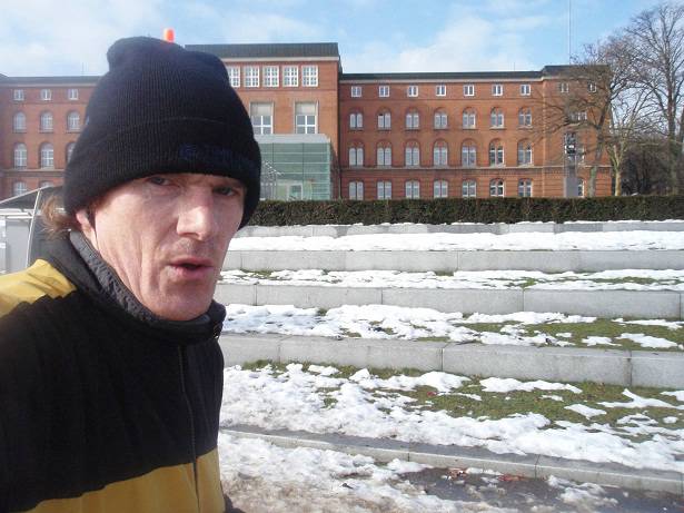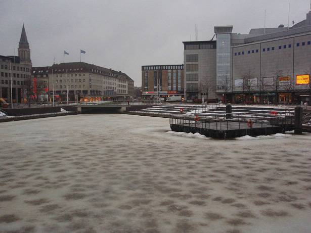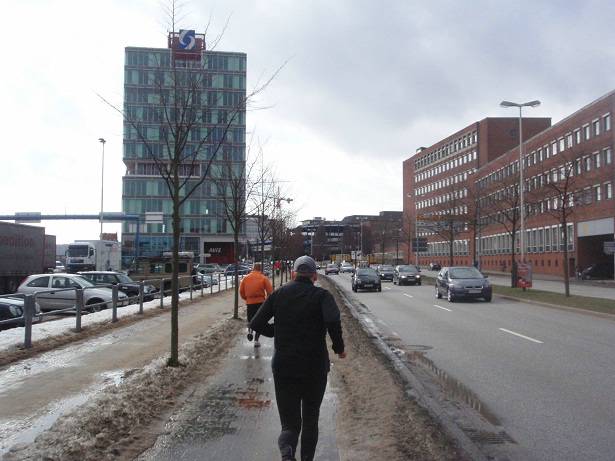 Ecke Kaistraße / Ziegelteich 8.20 Uhr Immerhin schien die Strecke (hier die südliche Wende) von Schnee und Eis befreit zu sein. Ob ich allerdings nach zwei Monaten Winter noch wußte, wie man OHNE Eis und Schnee läuft...??? |