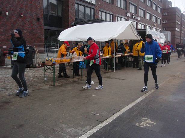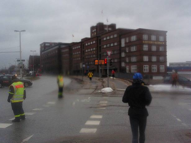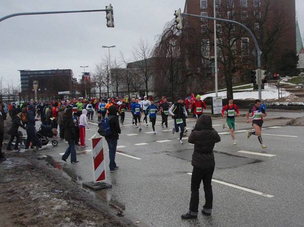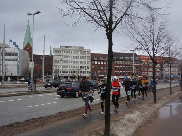 Kaistraße / Wall 10.45 Uhr / Kilometer 6,5 Runde 1 Vom Drei-Kilometer-Lauf nach Süden gegen Wind und Regen sind keine Fotos übrig geblieben. Mistwetter. Da war es bei -5° im Schnee bei Sonne irgendwie besser. |