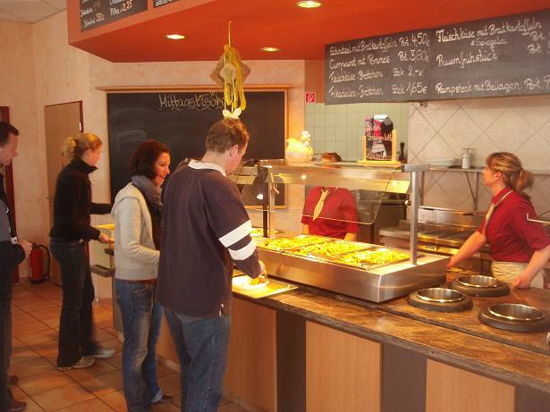 17.50 Uhr Statt um 18.00 Uhr ging es dann doch etwas früher los. Das Rezept war identisch mit dem der Vorjahre (damals im Restaurant bei Karstadt bzw. Hertie). Diesmal war ich auch so früh da, daß die Läufer vor mir noch nicht alles gute Fleisch rausgesucht hatten. |