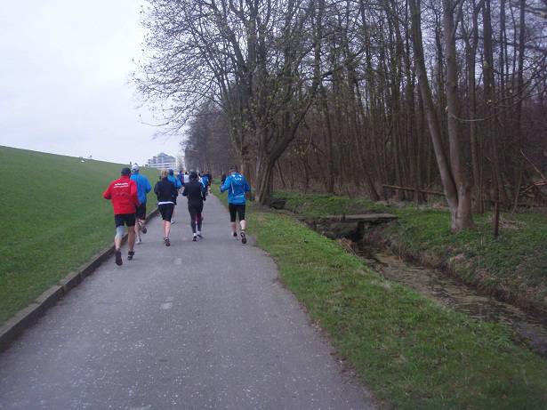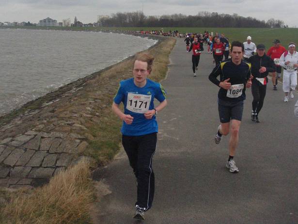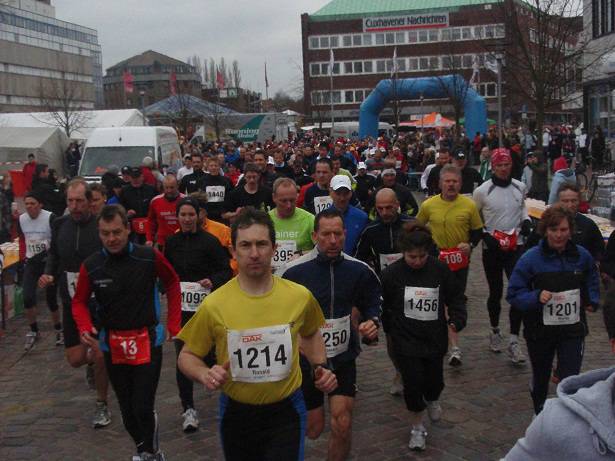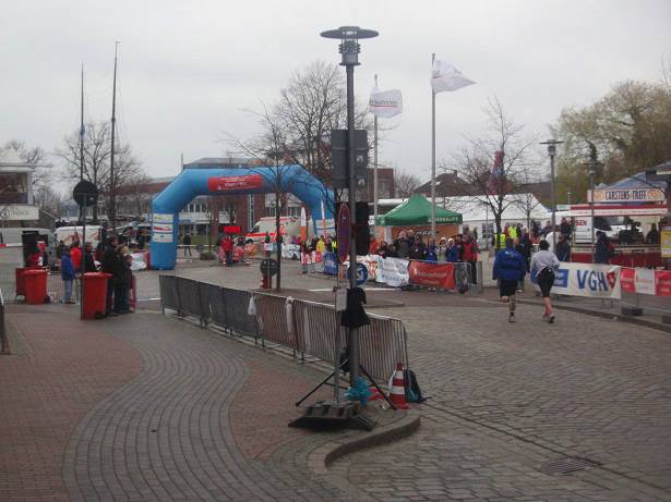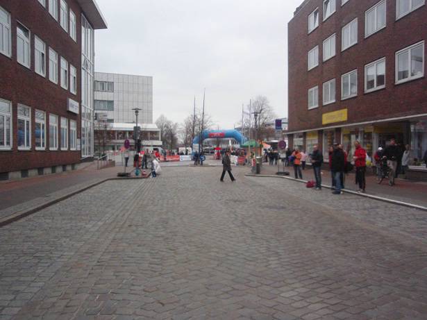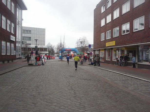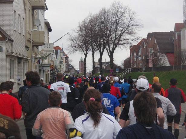 Deichstraße, 11.00 Uhr Runde 1 / Kilometer 0,1 Wie schon 2008 und 2009 gab es einen 10,55-Km-Kurs, der viermal zu umlaufen war. Für die Halbmarathonläufer nur zweimal versteht sich. |