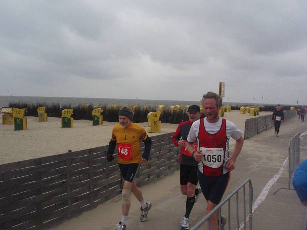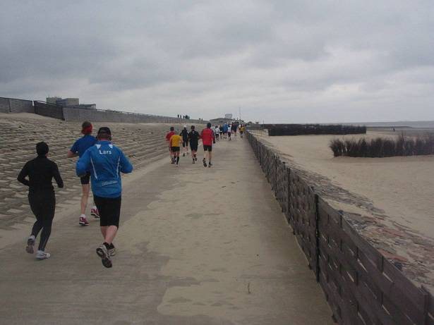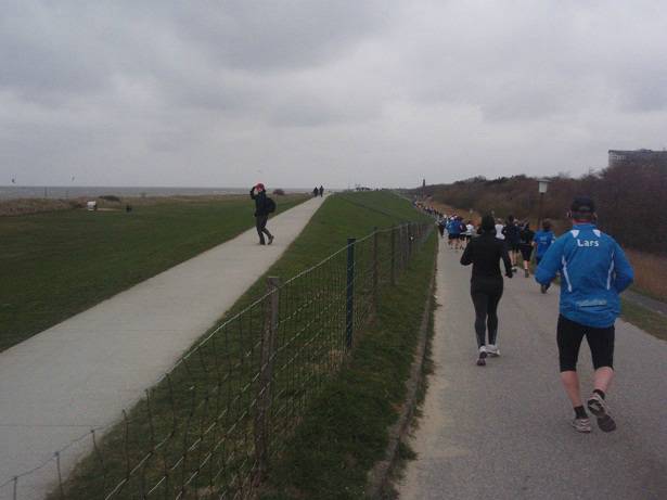 Döser Strandhaus, 11.27 Uhr Runde 1 / Kilometer 5 Für die Nordsee und den Strand hatten wir Läufer kaum einen Blick übrig. |