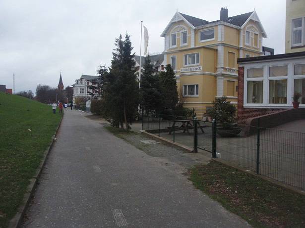Schillerstraße, 12.41 Uhr Runde 2 / Kilometer 20,0 Schönes altes Haus im Lotsenviertel Cuxhavens. 1:41:13 Stunden hatte ich hier auf der Uhr. Kurz darauf zum Halbmarathon waren es 1:48:47 Stunden. Das klang noch ganz gut. |