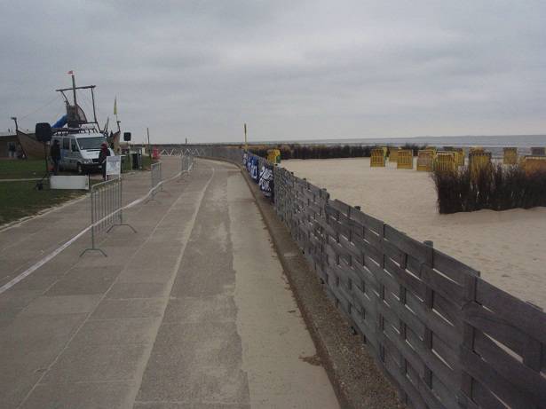 Strandwanderweg, 11.22 Uhr Runde 1 / Kilometer 4,5 Eine Kurve später war der Wind weg. Dafür lief man halbseitig auf dem Sand, welcher aber nicht allzu tief war. |