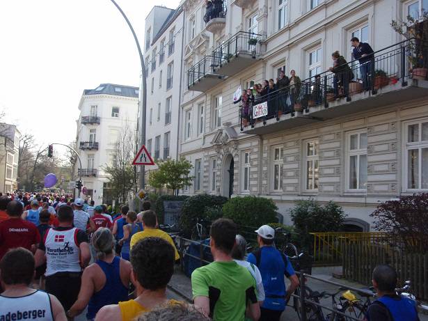 Elbchaussee 9.41 Uhr / Kilometer 8,0 Angefeuert wurde auch von den Balkons aus. |