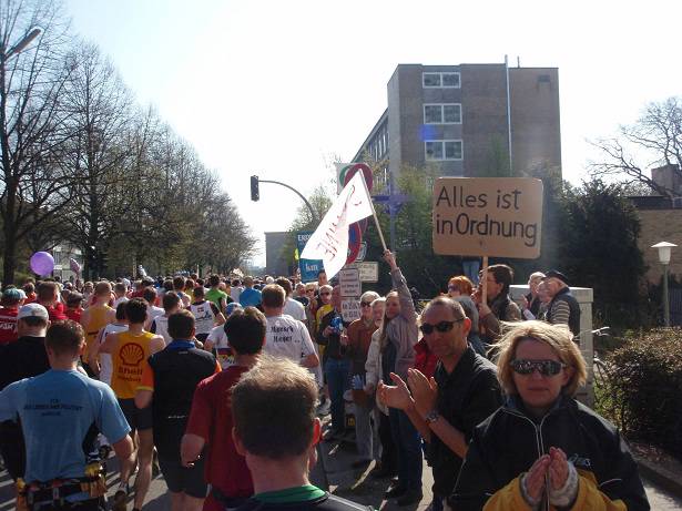 Palmaille 9.45 Uhr / Kilometer 9,0 "Alles ist in Ordnung". Na, dann kann ich ja beruhigt weiterlaufen. |
