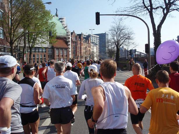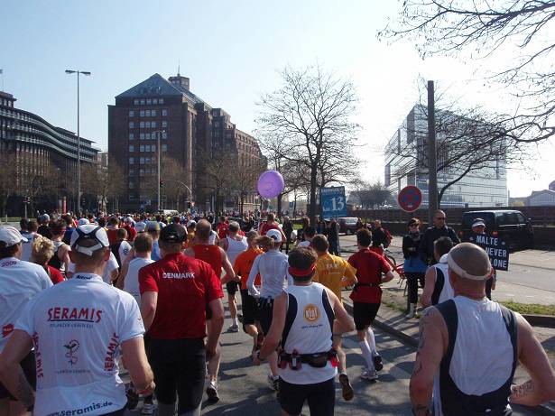 Bei den Mühren 10.02 Uhr / Kilometer 12,5 Rechts konnte man hier deie historische Speicherstadt sehen. Da ich die aber gut genug kannte, heftete ich meinen Blick auf die Ballons vor mir. |