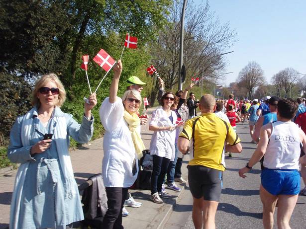 An der Alster 10.25 Uhr / Kilometer 17,0 Und natürlich immer und überall die dänischen Fans. |
