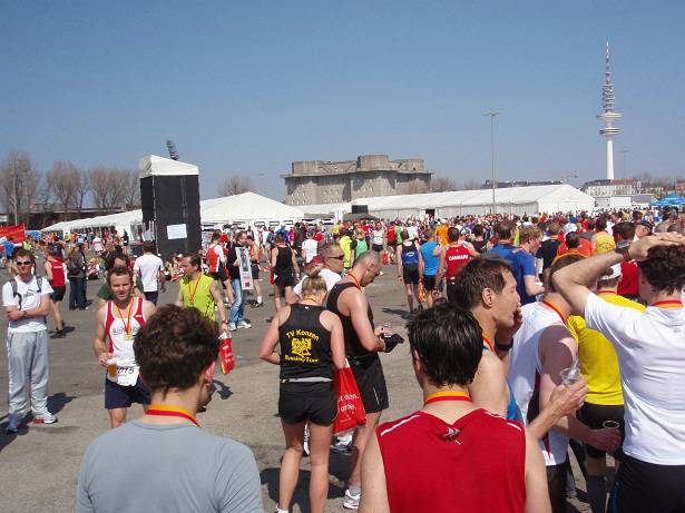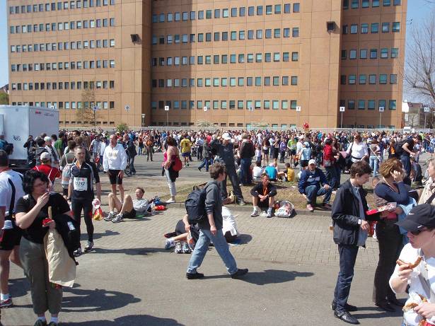 Heiligengeistfeld, 13.24 Uhr So übersichtlich sich das Dorf der Läufer vor dem Start gibt, so unübersichtlich ist es nach dem Rennen. Oder sind da alle völlig desorientiert?? Also hier ist die Ausgabe der Soforturkunden. Aber nicht da, wo "Eingang" steht (da ist der Souvenirshop), sondern wo die ganzen Leute im Hintergrund anstehen. |