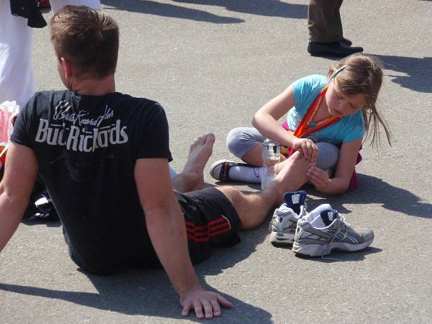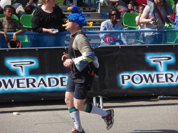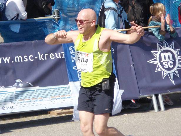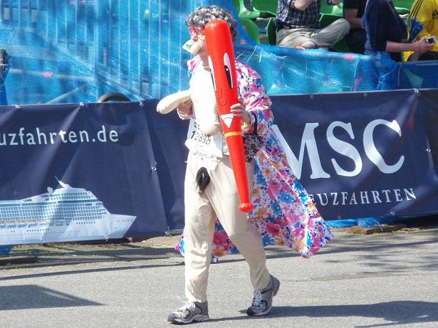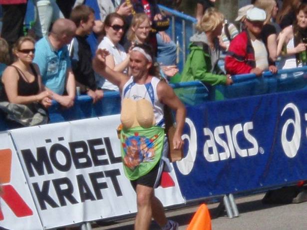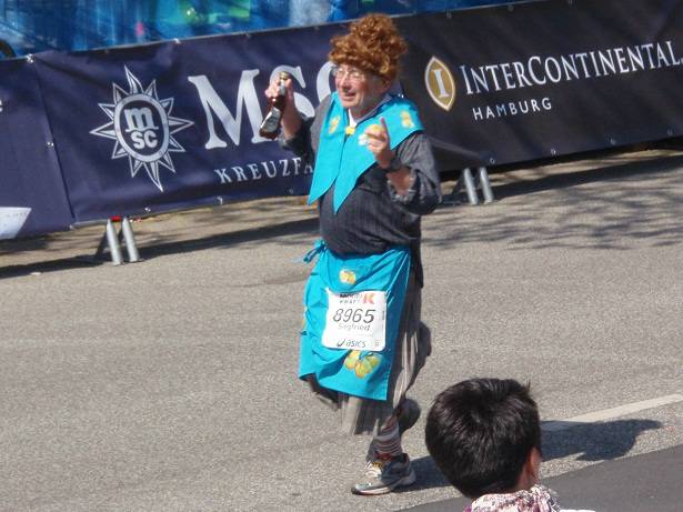 Glacischaussee, 14.43 Uhr Sammy Hellwig sieht ein wenig nach einer anderen Sportart aus. Ist aber egal. 5:34:11 Stunden. |