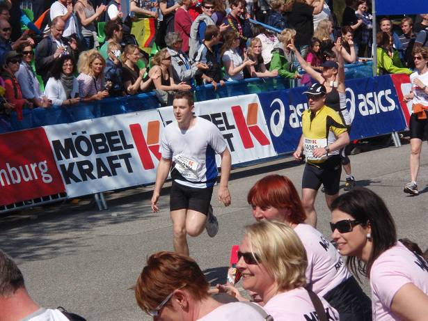 Glacischaussee, 14.40 Uhr Peter Albrecht vom Hamburger Laufladen. 5:30:17 Stunden. |