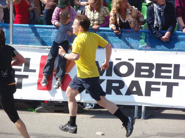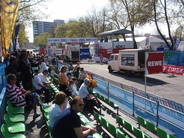 Glacischaussee, 13.48 Uhr Die Leistung der Läufer auch auf den hinteren Plätze wird auch vom Publikum aner-kannt. Denn auch weit mehr als zweieinhalb Stunden nach dem Durchlaufen des Sieger waren die Tribünen immer noch toll besetzt. |