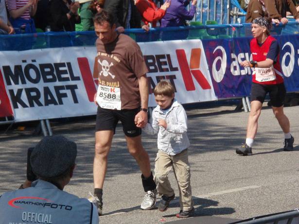Jubiläums-Marathon von Hamburg damit gelaufen, Tausende andere Läufer waren