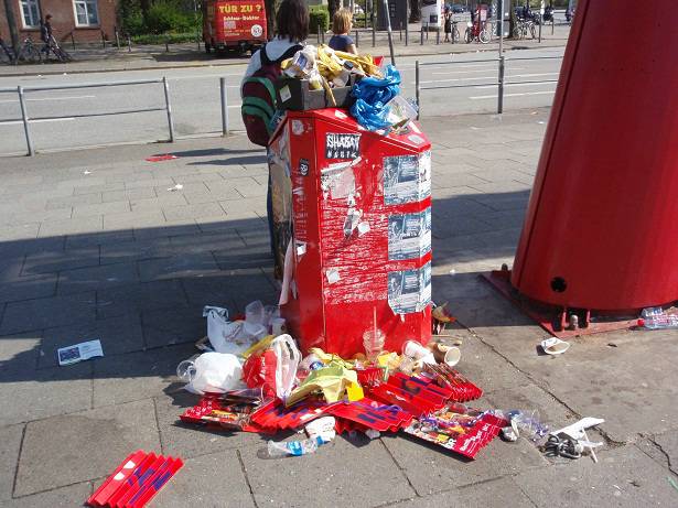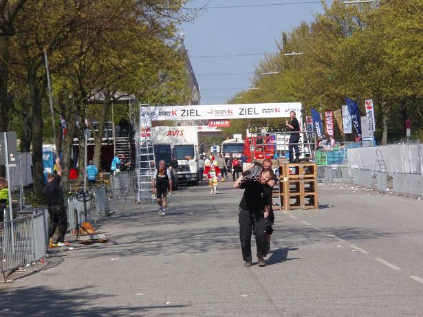 Glacischaussee, 15.27 Uhr Als allerletztes passierten dann die Müllwagen das Ziel des Hamburg-Marathons. |