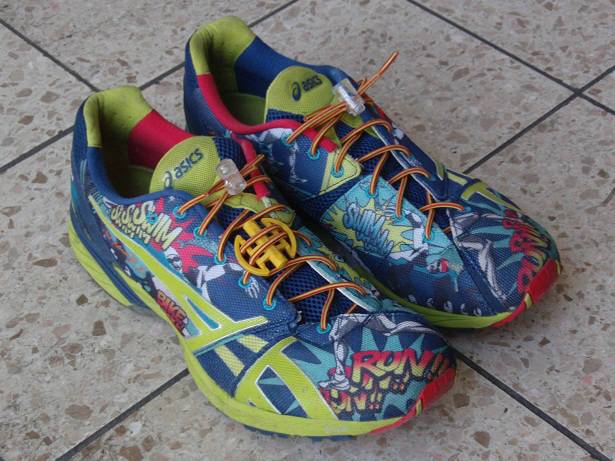 Meine Rekord-Schuhe. Die ASICS TRI-NOOSA. Sehr leicht und auch naß nicht viel schwerer. Mit denen lief ich jetzt 3:23:51 Stunden und 2009 in Bremerhaven 3:22:52 Stunden, meine aktuelle Bestzeit. |