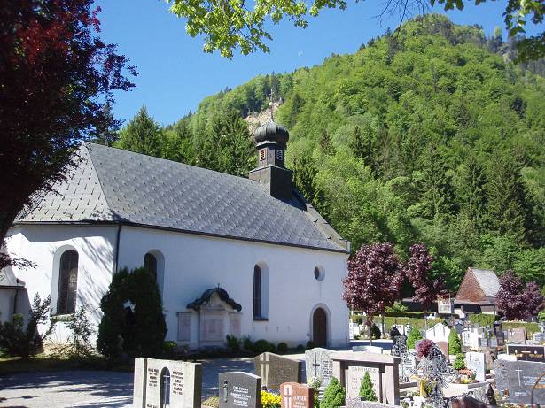 Immenstadt, 10.44 Uhr Kapelle am Friedhof. Immer im Blick die umliegenden Berge, die unzählige schöne Wanderstrecken bieten. Mir schien aber, es gäbe weit mehr Radler als Wanderer. |