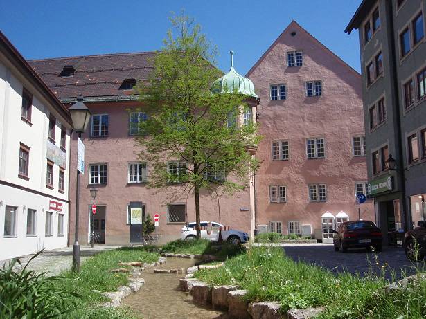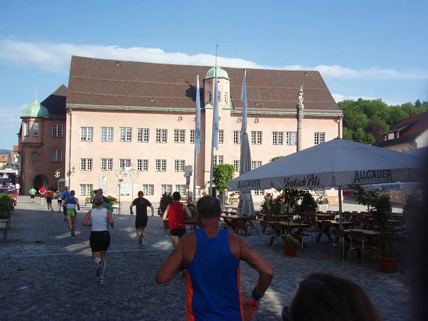 Marienplatz, Immenstadt 8.24 Uhr / Kilometer 1,5 Und auch am Marktplatz kamen wir vorbei. Allerdings verirrten sich praktisch keine Zuschauer an die Strecke. |