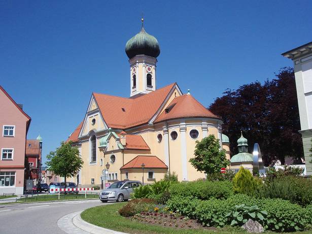 Salzstraße, Immenstadt 8.23 Uhr / Kilometer 1,5 Nach dem Wald ging es einmal quer durch Immen-stadt durch. Auch an der Stadtpfarrkirche St. Nikolaus ging es vorbei. |