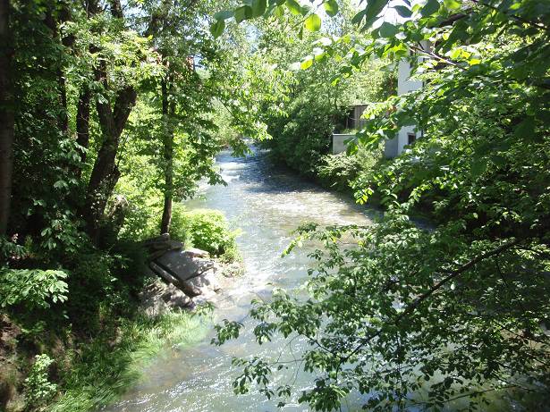 Blaichach 10.19 Uhr / Kilometer 24,5 Ein paar schönere Ecken gab es zwar (wie hier), aber so den Fluß entlang und ohne Mitläufer zog sich der Lauf nun in die Länge. |