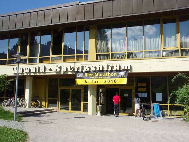 Das Auwald-Sportzentrum war der Anlaufpunkt für die Teilnehmer am Iller-Marathon. Überlaufen war die Anlage nicht. Die Ausgabe der Startnummer passte locker auf den Treppenansatz im 1. Stock. |