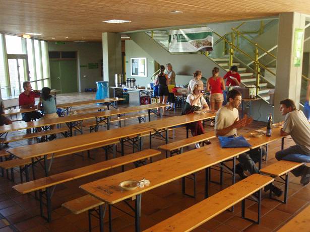 Hier im Sportzentrum gab es auch die Pasta-Party. Der Andrang hielt sich auch hier in Grenzen. Lecker war es. Gut warme Nudeln und zwei Soßen zur Wahl, dazu ein Getränk gratis. |
