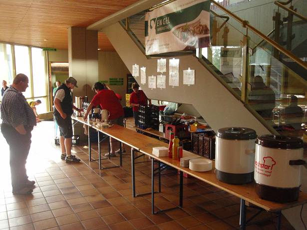 Auwald-Sportzentrum, 7.54 Uhr Und lecker Kuchen gab es auch reichlich. Das nenne ich mal ein interessantes Sportler-Frühstück. |