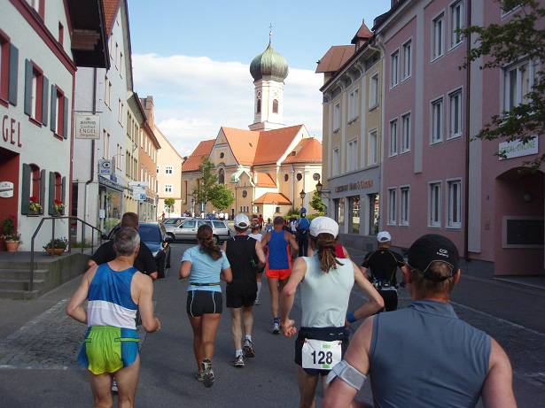 Immenstadt 11.50 Uhr / Kilometer 41,5 Back in Town!! Gerade hatte ich noch ein letztes Mal einen anderen Läufer überholt, der dann 1:36 Minuten nach mir ins Ziel kommen sollte. |