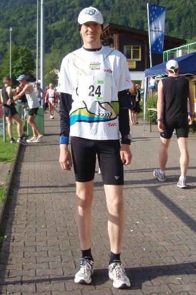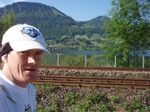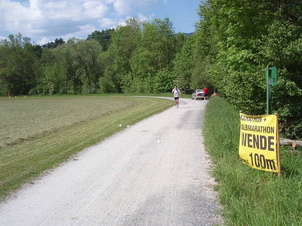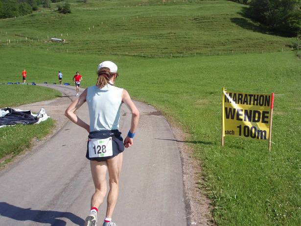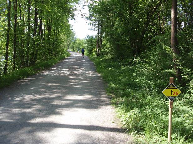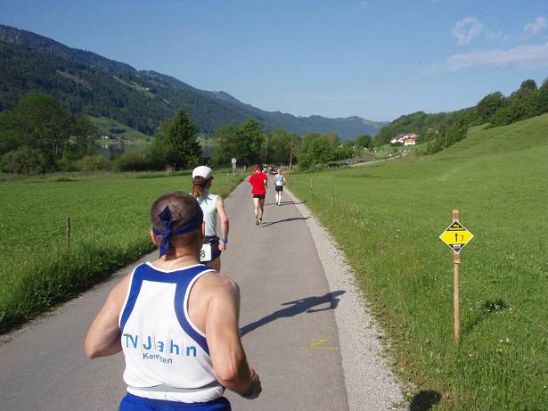 Sonthofener See 11.17 Uhr / Kilometer 35,5 Allmählich wurden die Beine schwerer. Die Kilometer zogen sich in die Länge und von Mitläufern fast keine Spur. |