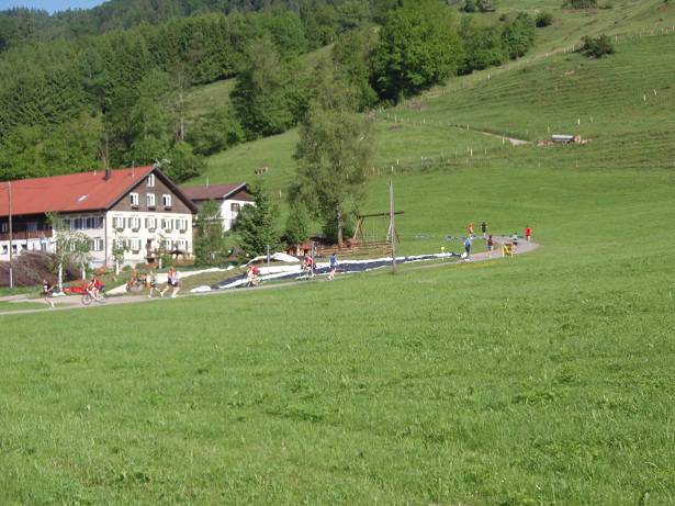 Blaichach / Hofen 11.37 Uhr / Kilometer 39,0 Die Sonne brannte von oben auf die Strecke und Schatten bot der Weg so gut wie nie. Aber die letzten drei Kilo-meter würde ich auch noch irgendwie schaffen. |