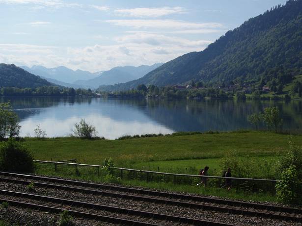 Sonthofener See 10.37 Uhr / Kilometer 27,5 Man erreichte Sonthofen, wobei man von der Stadt fast nichts zu sehen bekam, da das Zentrum auf der anderen Seite der Iller lag und man selbst die an diesem Teil der Strecke kaum zu Gesicht bekam. |