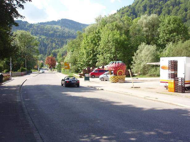 Missener Straße 9.54 Uhr / Kilometer 19,0 Und dann erreichten wir wieder Immenstadt. Eine Bäckerei und Erdbeeren. Klang alles lecker, ich hatte aber keinen Hunger. Geld hätte ich gehabt. Mein Not-geld, welches ich noch nie gebraucht habe. |