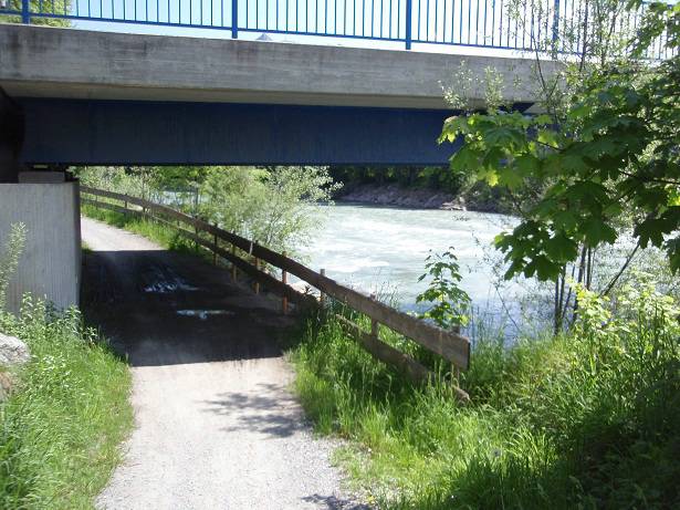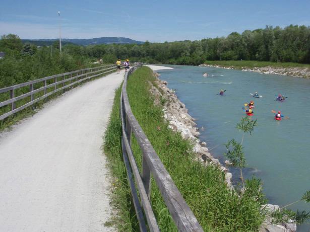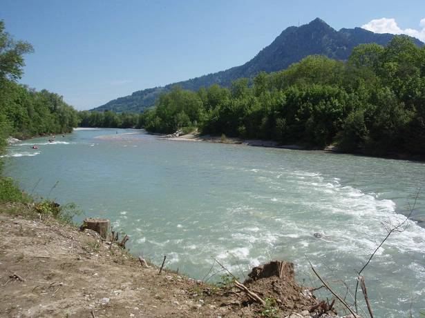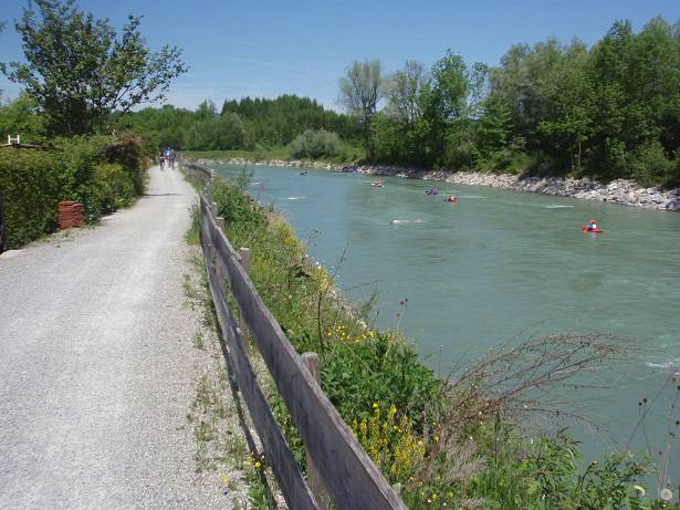 Blaichach 11.35 Uhr / Kilometer 38,5 Die Kanuten auf der Iller "verfolgten" mich nun schon fünf Kilometer. Die hatten genau mein Tempo. |