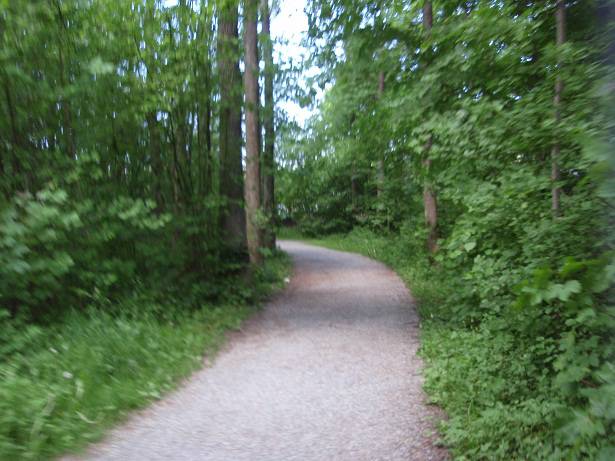 Bihlerdorf 10.29 Uhr / Kilometer 26,0 Ein weiter leichter Wind ließ die steigenden Temperaturen weiter erträglich erscheinen. Sobald wie hier im Wald der Wind aber weg war, bekam man praktisch keine Luft mehr. |