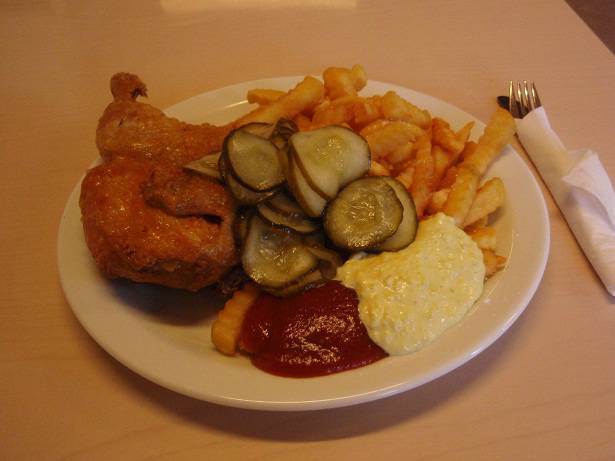 Statt Pasta-Party (gibt es nicht), holte ich mir das hier. Pommes und Hähnchen. Da stellt sich schon die Frage, ob ich da nicht gegen mein Fast-Food-Verbot an Marathon-Vortagen verstoßen habe. |