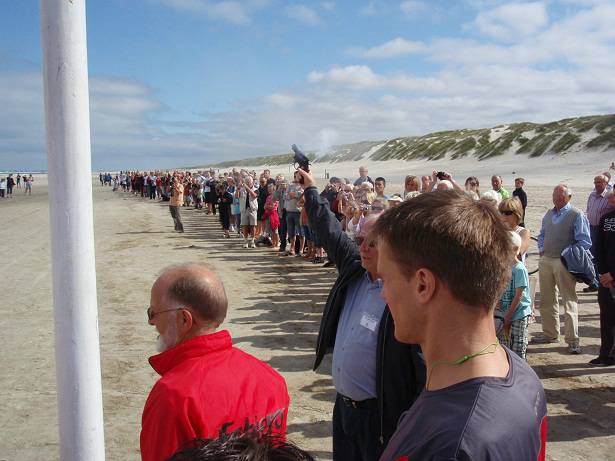 Vejers Strand, 9.24 Uhr Hier bekam man dann auch seine Startnummer. Man hätte sie auch Samstag in der Nähe von Nørre Nebel abholen können, aber das liegt irgendwo zwischen Start und Ziel und war alles andere als komfortabel erreichbar. |