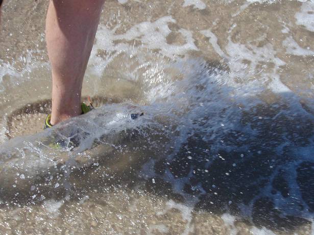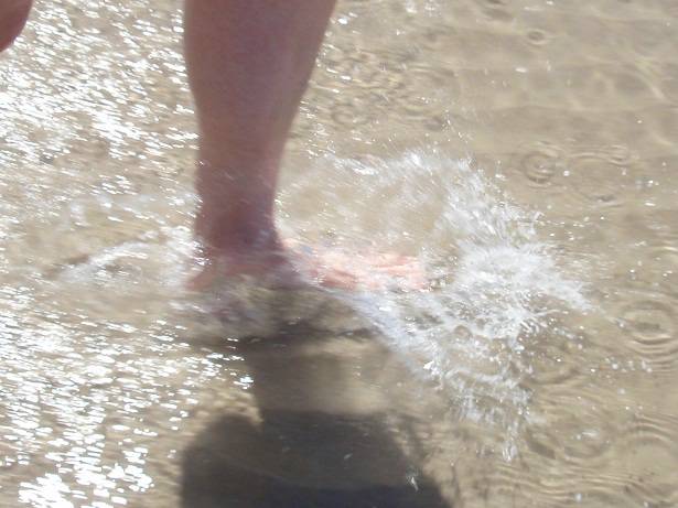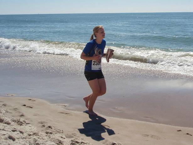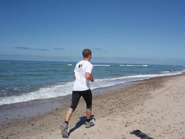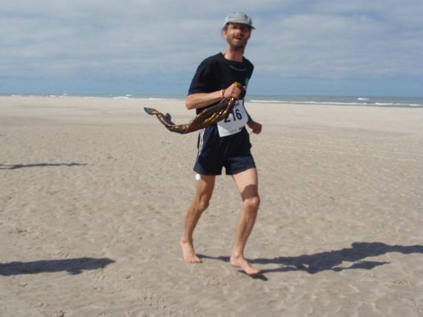 Hvide Sande Kilometer 41,5 / 14.16 Uhr Für den letzten Kilometer zog ich mir die Schuhe aus und lief barfuß ins Ziel. Da ging es vorher natürlich noch mal richtig schön ins kühle Naß der Nordsee. |
