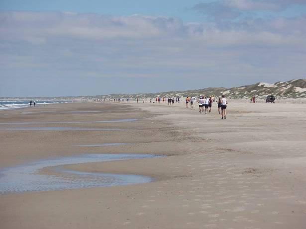 Vejers Strand Kilometer 0,1 / 10.30 Uhr Und los ging es auf die 42,195 Kilometer am Strand. |