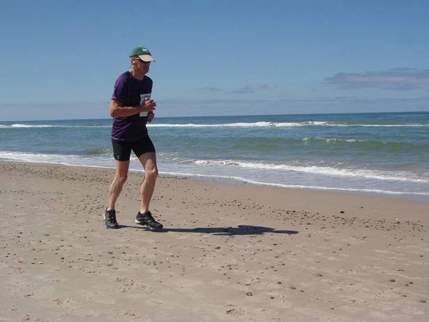 Henne Strand Kilometer 13,5 / 11.39 Uhr Und das war der letzte Läufer, der mich überholte. Den holte ich bei Km 26 wieder ein. |