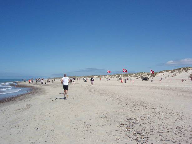 Børsmose Strand Kilometer 6,5 / 11.03 Uhr Es war aber bekannt, daß der Strand immer schwerer zu laufen sein würde, weswegen viele lieber in den ungeraden Jahren von Hvide Sande nach Vejers Strand lafen. |