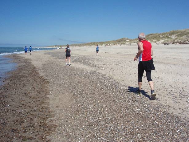 Vejers Strand Kilometer 1,0 / 10.34 Uhr Einige von denen werde ich ja nie wiedersehen, wenn die gleich vorne weg sprinten. |