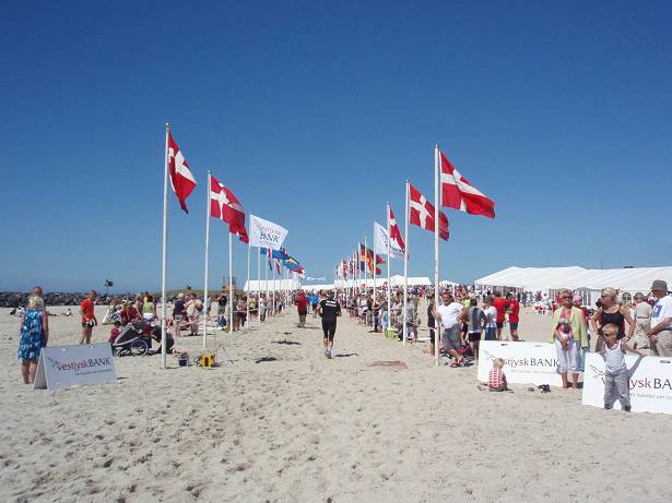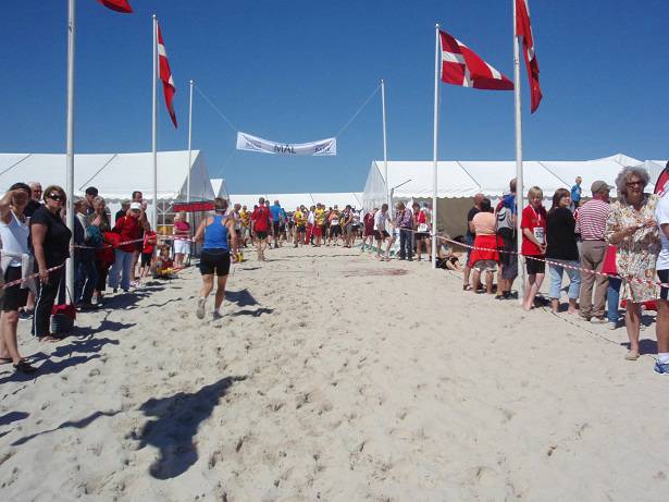 Hvide Sande Kilometer 41,8 / 14.17 Uhr Ganz am Ende mußte man das Wasser entgültig verlassen. Das Ziel war ein paar Meter den Strand rauf. |