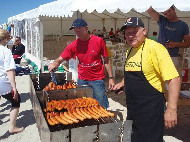 Hvide Sande, 14.40 Uhr Also die Würstchen waren viel leichter zu finden als alles andere. Viele Zelte, aber keine verbindlichen Schilder. Das Gepäck gab es sogar hinter dem Deich auf einem extra Parkplatz. Wer soll das denn ahnen?? |