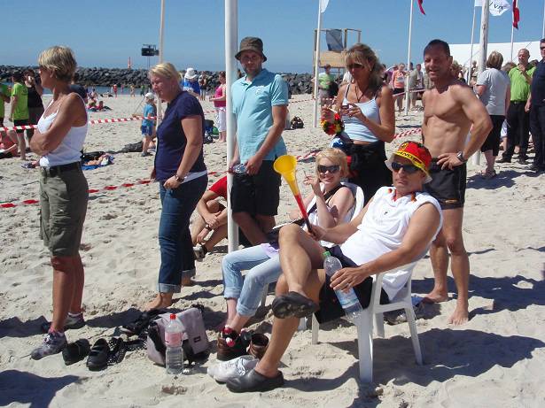 Henne Strand Kilometer 12,5 / 11.35 Uhr Aber eigentlich war es auch egal. Mehr oder weniger als vier Stunden... Hauptsache Ziel. Und Zielschluß war erst bei 6:30 Stunden. Allerdings fing um 16.00 Uhr das WM-Achtelfinale Deutschland-England an... |