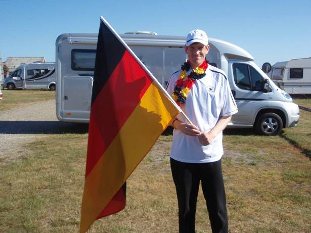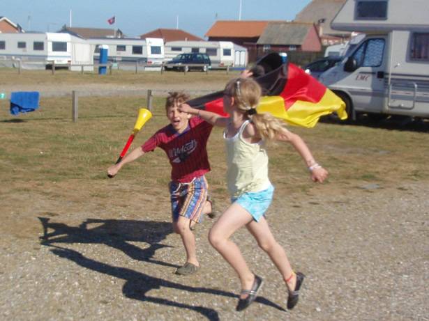 Årgab Camping, 17.26 Uhr Auf dem Campingplatz konnte die Feier weiter-gehen. Ein locker fröhliches 4:1 im Achtelfinale gegen England. |