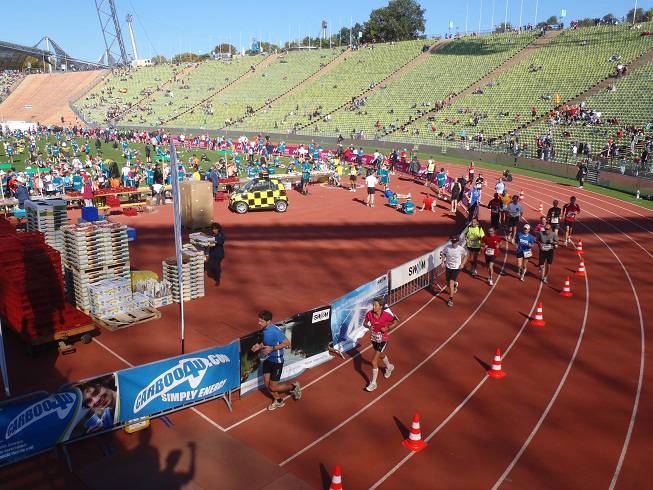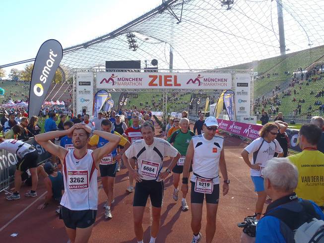 Olympiastadion München 13.48 Uhr / Kilometer 42,195 Vom Ziel ging es noch knapp 50 Meter weiter und um die Kurve, dann... |