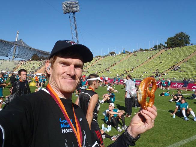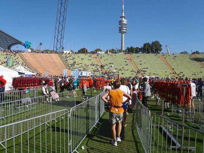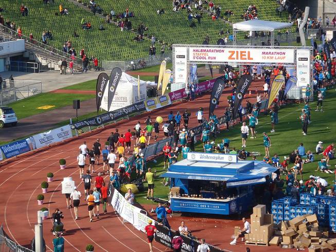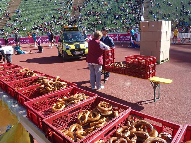 Olympiastadion München Als Zielverpflegung gab es dann Brezen (nicht Brezel). |