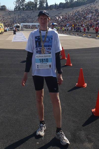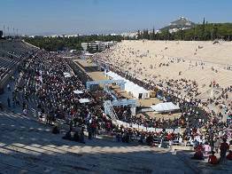 Eigentlich wollte ich gar nicht in Athen mitlaufen. Alles, was man mir vorab über den Athen Classic Marathon gehört hatte, war wenig verlockend. Chaotische Organisation, langweilige Strecke und keine Zuschauer an der Strecke. Nun ja... die Griechen gelten ja eher als Improvisations- denn als Organisations-Künstler. In dem Zusammenhang machte es auch eher Angst, daß statt wie in den vergangenen Jahren 3500 bis 3900 Läufer nun 12500 Marathonies erwartet wurden. Plus noch einmal rund 10000 Läufer in anderen Läufern vom Kinderlauf bis zum 10-Km-Lauf. Aber dann kam alles anderes. Organisatorisch klappte alles reibungslos. Sogar der neuralgische Transport der Läufer von Athen zum Start nach Marathon. Die Landstraße von Marathon nach Athen ist zumindest abwechslungsreich und die Leute standen zu Tausenden an der Strecke und feierten. In den kleinen Ortschaften gab es regelrechte Volksfeststimmung. Der Hammer war dann aber der Zieleinlauf ins Panathinaikon-Stadion, dem alten Olympiastadion aus dem Jahre 1896 |